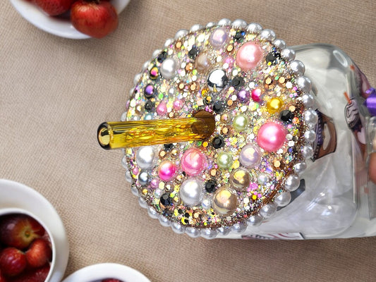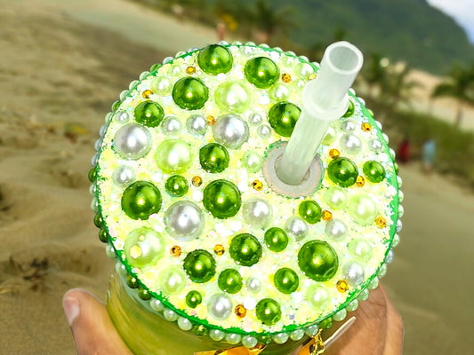 Malibu Lime - Caribbean Rum Glass Mug + Rhinestones & Pearls Lid [25oz]