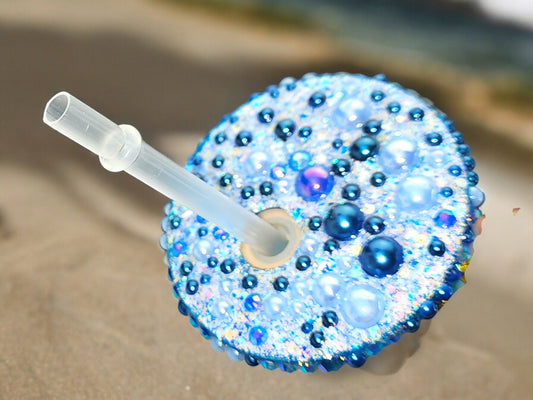 Malibu Original Blue - Caribbean Rum Glass Mug + Rhinestones & Pearls Lid [25oz]