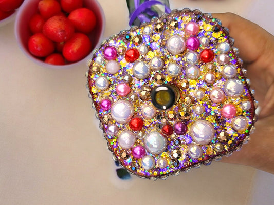 Forever Too Late Lovers Hourglass Glass Mug + Rhinestones & Pearls Lid [13oz]