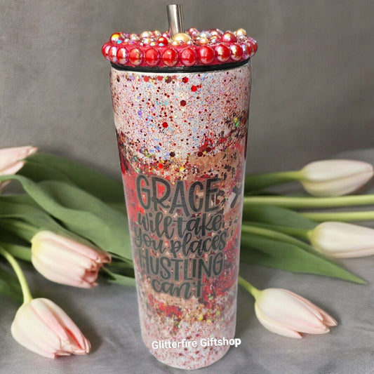 Grace Will Take You Places Mug + Rhinestones & Pearls Screw Lid [20oz]