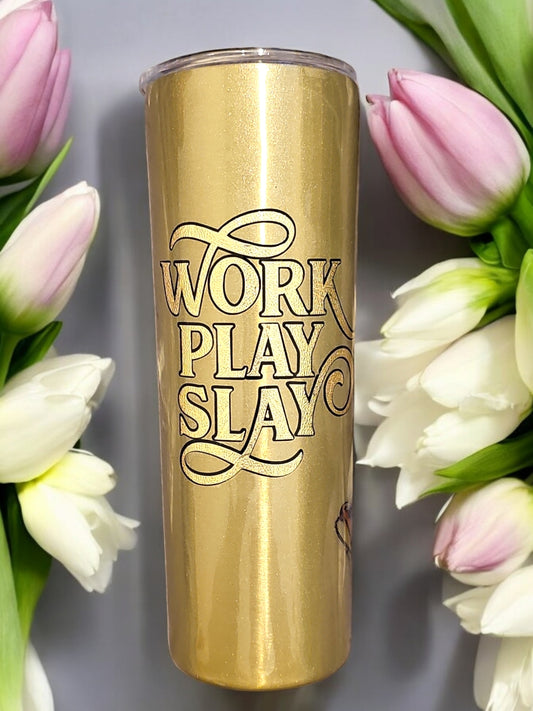 Work, Play, Slay - Gold Bird Cage Mug [20oz]